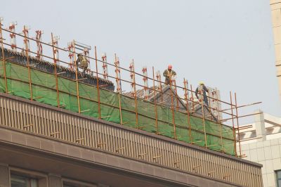 海龍公司副總經理、該項目負責人邢松說,目前海龍公司已向社會公布整改方案,并找了工人進行拆除、整改。“但拆除起來難度很大。因為在樓頂,又不能破壞下面4層樓,只能用人工拆。我們雇用了十多個工人一起工作,建筑垃圾用袋子裝后通過電梯運下去。”他說,由于近日降溫,手工拆除需工人站在樓外進行,所以遇大風時會暫緩作業。“具體哪天能整改完成還不好說,因為有天氣等因素。但我們準備按照政府要求,在40天內完成拆除。”