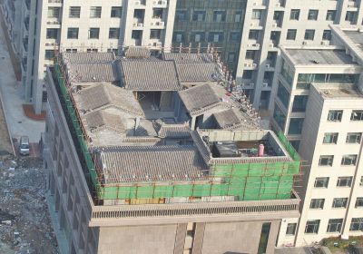 “樓頂四合院”位于滎陽市滎澤大道與繁榮街交叉口西北角的大院內。四合院在4層建筑的樓頂上,已被圍擋遮住。四合院內,幾名工人正站在墻頭拆除瓦片。院內西北角和東北角有兩堆瓦礫,看得出拆除工作剛剛開始。對于具體開拆時間,院內工人并不回答。