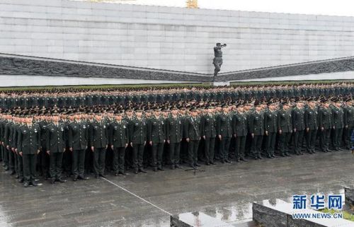 12月10日,解放軍官兵冒雨參加宣誓活動。當(dāng)日,駐南京的一批解放軍官兵在侵華日軍南京大屠殺遇難同胞紀(jì)念館內(nèi)的和平公園舉行“勿忘國恥,圓夢中華”主題宣誓活動,祭奠南京大屠殺遇難同胞,表達(dá)牢記歷史、堅(jiān)守國防、捍衛(wèi)和平的決心。新華社記者孫參攝。