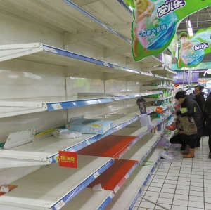 很多貨品已被前來(lái)?yè)屬?gòu)的市民掃空