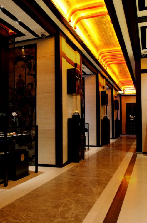 幾乎所有人在踏入老鋪黃金以后,都會懷疑這是不是一家金店。沒有鋪滿金光閃閃金鏈條的柜臺,取而代之的是由大葉紫檀書架和書桌,以及低調的啞光金器。在進入東方新天地之前,這家”老鋪“在工美大廈里低調地經營了許多年,積累了一批熱愛收藏的死忠粉絲。