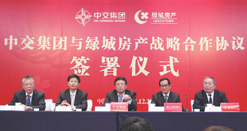 本報杭州專訊 12月23日,中國交通建設集團有限公司(“中交集團”)與綠城中國控股有限公司(“綠城”)大股東宋衛平先生及其他關聯股東在杭州正式簽署股份購買協議,擬以總價約60.15億港幣收購其控制的約42%的綠城股份中的共計24.288%的股份,進而使得中交集團在交易后成為綠城并列第一大股東。交易后,中交集團將向綠城派遣部分董事和高級管理人員,參與綠城的經營和管理,中交集團與綠城將以優勢互補為最終目標,共同致力于海內外房地產業務的發展,努力為中交集團及綠城創造戰略價值。