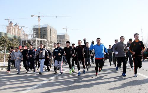 2014年12月31日,山東省滕州市干部職工參加長跑比賽,迎接新年。