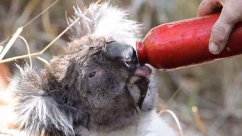 澳大利亞高溫導(dǎo)致多地出現(xiàn)山火,幸存的考拉不得不靠人類幫忙補(bǔ)充水分。