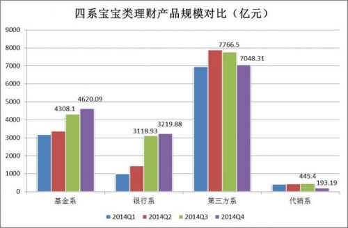 2014年四系寶寶類理財產(chǎn)品規(guī)模對比