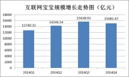 截至2014年12月31日,寶寶類理財產(chǎn)品數(shù)量仍為79只,規(guī)模15081.47億元,較2014年第三季度減少557.46億。這也是自2013年6月份余額寶誕生以來,寶寶類產(chǎn)品首次出現(xiàn)整體規(guī)模負(fù)增長。