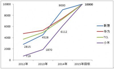 這也是為什么諸多國產手機廠商明明沒怎么賺錢,卻還在不停的大聲吆喝,究其原因是要爭個話語權。2015年是個關鍵節點,這一年將有幾家國產手機廠商的年銷量超過1億部,曾對外表態2015年目標是超1億部的廠商有5家。