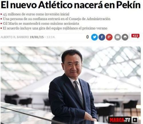 西班牙《馬卡報》稱王健林將于21日宣布入股馬德里競技