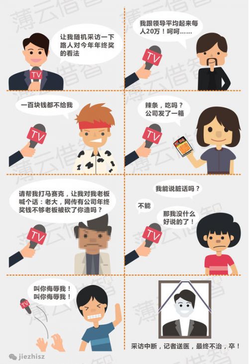 從前有只羊,每天干8小時的活。有一天主人告訴它:多干活有獎勵。于是羊每天干10小時。此后主人開始把它身上的羊毛剪下三分之一。年底了,主人給它織了件毛衣,然后告訴它:“諾,這是你今年的獎勵,明年繼續努力!”羊很生氣,把它的故事寫成童話,起個名字叫:“年終獎”。