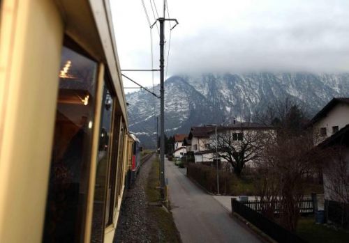 (克強總理乘坐的專列駛往達沃斯,鐵路依山上行,窗外景色怡人。)