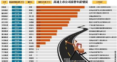 而率領(lǐng)高速公路上市公司“連年大捷”的高管們,從中也獲得了不菲的回報。新京報記者根據(jù)2013年的年報統(tǒng)計,當年,19家公司共向其董事、監(jiān)事和高管團隊支付了8796萬元的報酬。