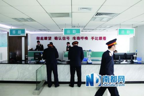 廣州南站派班室,前臺、墻壁字句非常醒目,提醒司機注意安全。