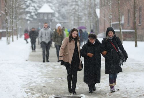 翻譯和記者陪同91歲的老人Alina Dombrowska參觀集中營(yíng),她19歲時(shí)作為政治犯被關(guān)押在此長(zhǎng)達(dá)1年半。同時(shí),她也是為數(shù)不多尚且健在的幸存者之一。