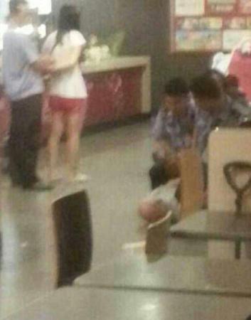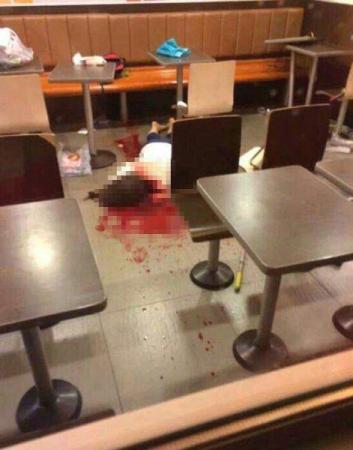 2014年5月28日21時許,張立冬等6人(其中一人未成年)在山東省招遠市一麥當勞快餐店內就餐時,與同在該店就餐的女子吳某發生口角。后張立冬等6人對吳某進行毆打,致吳某受傷,后經搶救無效死亡。圖為事發現場資料圖。