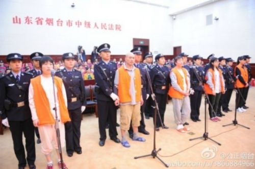 2014年10月11日上午9時,山東招遠涉邪教故意殺人案在煙臺中院第一審判庭公開宣判。張帆、張立冬等2人被判死刑,呂迎春被判無期徒刑,張航有期徒刑10年,張巧聯有期徒刑7年。圖為現場。