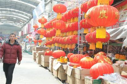 “你看,這些對聯、年畫、大燈籠讓小商品城提前進入了過年狀態。”昨天上午,即墨市小商品城內的商家拉開了羊年飾物批發“大戰”,眾多年貨陸續亮相。大大小小的紅燈籠、中國結,帶有生肖圖案的吊錢、福字已經大量上市。