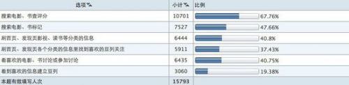 電影和圖書的標記、評分是用戶使用最多的功能。