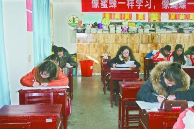 武漢高三學生的一次2月調考。武漢市第四十九中學出現這樣一幕:師生在同一考場里答卷。原來,該校要求35歲以下青年教師每年必須與學生一起參加2月調考,只考所教科目。昨日,共有33名教師與學生同場考試。