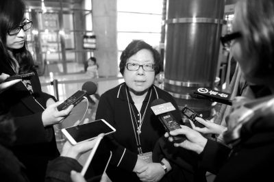 昨天,香港代表團(tuán)人大代表劉佩瓊接受記者采訪。京華時(shí)報(bào)記者潘之望攝