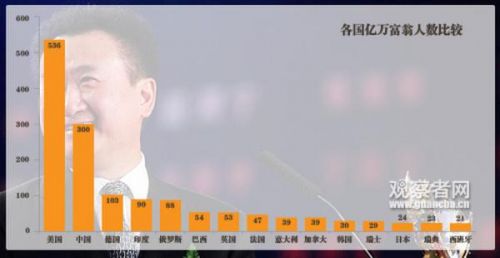 中美兩國在全球富豪榜上榜人數的遙遙領先,顯示“兩國集團”(Chimerica)效應明顯,中美兩國正在引領全球的財富創造。