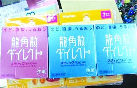 感冒藥,或者準(zhǔn)確地說是上呼吸道使用藥品是成人世界的一大香餑餑。尤其是國內(nèi)連年的霧霾,讓日本對付花粉等過敏原的喉嚨噴霧劑類產(chǎn)品,一躍成為國人的抗霾明星產(chǎn)品。在日留學(xué)生趙麗就曾經(jīng)目睹過一個中國游客,在大阪道頓堀買走了一個隨身箱的喉嚨噴霧劑,“大概有二三十支吧,據(jù)說是帶回去送人的。”另外,由空氣質(zhì)量引起的干咳,在一種叫“龍角散”的藥上得到了明顯緩解。“只要口含,不用水服。我基本上到第三包,就會改善很多。”毛毛同樣還購了10罐淺田糖,日本的廣告詞是“鎮(zhèn)咳祛痰界的不老傳說,85年前已被人們所青睞”。“它是無糖的,不用擔(dān)心熱量也沒有甜味引起的二次不適,還有液體裝的。”毛毛說,日式的細(xì)膩和周到,往往就是購買的催化劑。感冒藥則勝在初期服用就有明顯的效果,這是廣大服藥者最大的感受。和國產(chǎn)感冒藥不同的是,日本的感冒藥吃了不會犯困疲倦,有些還特別注明“即便駕駛也可安心服用”。