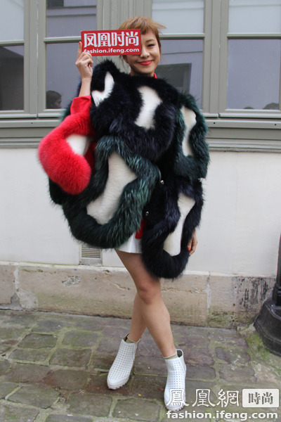 林嘉欣穿拼接皮草大衣亮相Ground Zero