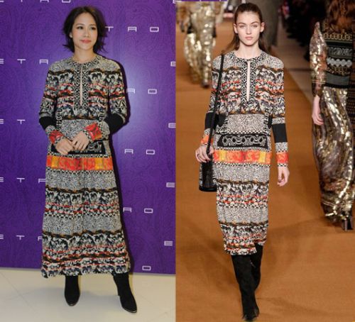 林嘉欣身著etro2014秋冬系列印花裙亮相Etro新店開業