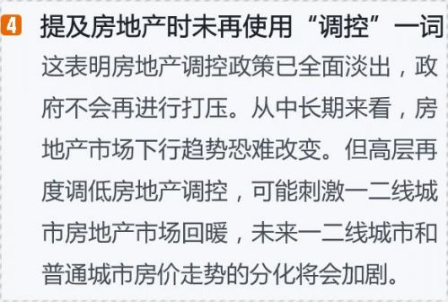 去年,《政府工作報告》對房地產調控的表述明顯降溫,用“分類調控”代替了此前無差別的“房地產調控”,也沒有出現“堅決”、“加強”等字眼。