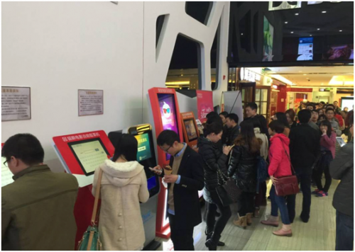 據了解,昨日北京、上海等多地的主流影院都出現百度糯米取票機前排滿數十人長隊的情景,甚至有部分用戶等到電影快開場才趕上換票。在北京望京星美影城,早早來到影院帶孩子看《超能陸戰隊》的黃先生表示“這部電影孩子特別想看,享受3.7元選座購票的下午場次早早被訂滿,晚上還是看了,一家三口才花了10元錢,感覺很滿足。”