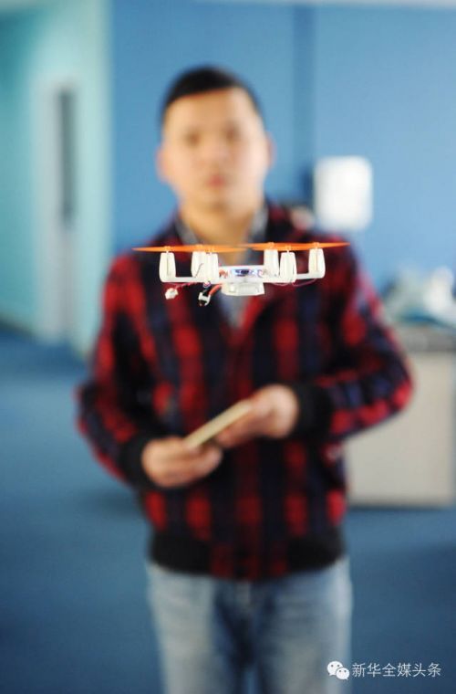 Flex創(chuàng)客團(tuán)隊(duì)隊(duì)員在位于貴陽的辦公室中操作他們的產(chǎn)品——3D打印制造的遙控飛機(jī)。新華社記者 劉續(xù)攝