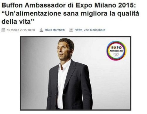米蘭世博會將會在今年的5月1日舉辦,根據意大利安莎社的最新消息,尤文圖斯隊長布馮當選為本次大會的形象大使。在世博會播放的官方視頻中布馮表示“滋養地球,為生命加油””將會幫助我們實現目標,這也會是我們所面臨重大挑戰。