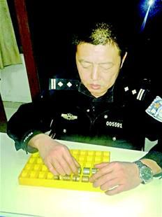 圖為:民警示范操作點數硬幣的模具