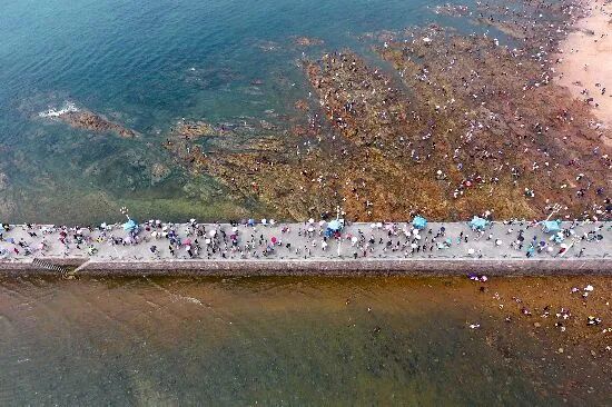青島棧橋旁的海水浴場。圖片來源:新華社