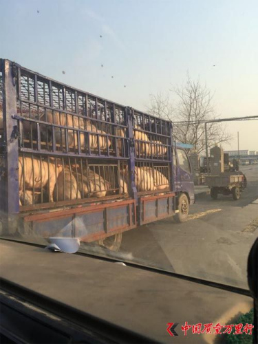 今年2月中旬,另一路記者在山東進行了調查。在通往德州金鑼公司的馬路上,送運生豬的車隊浩浩蕩蕩,排出幾里地遠,記者近距離觀察,發現有些生豬的蹄部明顯呈黑色。多位拉豬戶告訴記者,“這些豬得過‘口蹄疫’。”