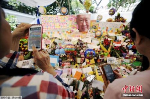 當(dāng)?shù)?月23日,新加坡前總理李光耀當(dāng)天凌晨3時18分在新加坡中央醫(yī)院病逝,享年91歲。圖為新加坡民眾參加哀悼活動。