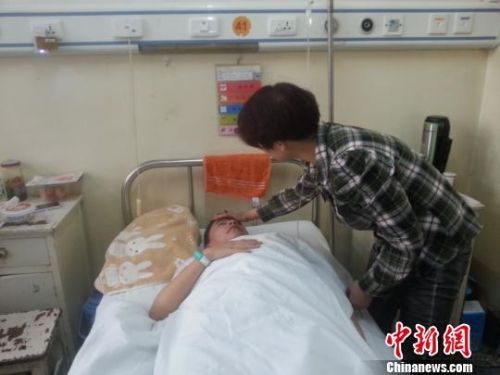 22日16時,中新網記者在青海省人民醫院腦外科見到被打學生胡瑞時,他正躺在病床上做腰椎穿刺,因疼痛難忍而抽泣。為緩解穿刺時的疼痛,胡瑞不斷掙扎,大夫和家人一再鼓勵他要堅持。