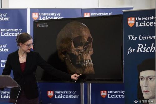 萊斯特大學(xué)展示理查三世頭骨圖像。
