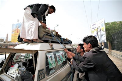 28日,也門首都薩那,沙特空襲行動(dòng)持續(xù),大量民眾為了躲避空襲,收拾行囊逃離家園。