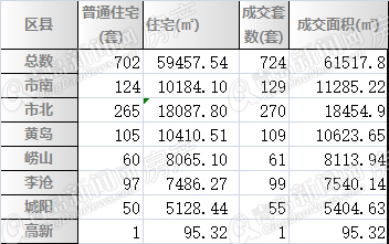前一周的“黑馬”李滄區上周滑至第四名,99套的交易量與前一周持平,成交面積7540.14㎡,環比漲4.8%。嶗山上周成交61套房源,環比漲了52.5%,成交面積8113.94㎡,環比漲60.23%。城陽區上周交易二手房55套,環比漲27.8%,成交面積5404.63㎡,環比小降8.1%。另外高新區也成交一套95.32㎡的房源。