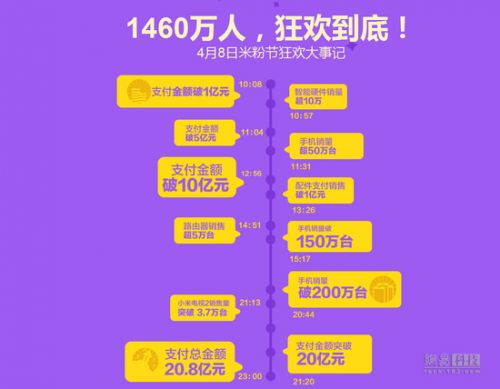 和以往米粉節(jié)一樣,小米再次用刺激腎上腺素的方式實現(xiàn)海量銷售:小米官方數(shù)據(jù)顯示,在上午活動開場38秒時,首批整點搶購商品全部售罄;截至16點04分,米粉節(jié)總支付金額已經(jīng)超過15.7億元,刷新了去年米粉節(jié)全天15億元和去年天貓雙11全天15.6億元的雙重紀錄。而截至18時48分,“米粉節(jié)”完成支付的手機出貨數(shù)突破190萬部,打破了去年雙十一天貓手機出貨總量1894867部的歷史紀錄。