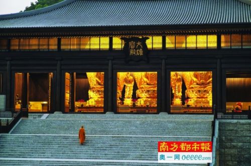 僧人拾級而上,步入大雄寶殿。