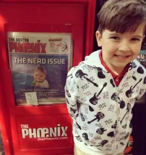 照片中是和睦的一家三口,有細(xì)心的網(wǎng)友發(fā)現(xiàn),照片中的小男孩正是這幾年非常流行的表情圖標(biāo)“成功仔”(success kid)的原型人物,也叫“握拳寶寶”。