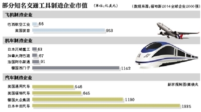 除此之外,目前最大的飛機制造商波音公司的市值為953億美元,南北車已經成功超越波音。或許在汽車、火車、飛機三大交通工具制造商中,“神車”在市值上的對手只剩下了1935億美元的日本豐田汽車了。(記者趙嘉妮)