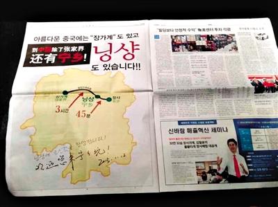 向霞光:張家界和韓國的一個(gè)城市是友好城市,年前我去張家界旅游,看見當(dāng)?shù)赜泻芏囗n國游客,從長沙去張家界要經(jīng)過寧鄉(xiāng),我以前也經(jīng)常看到去張家界的韓國旅行團(tuán)從寧鄉(xiāng)路過,但很少會在寧鄉(xiāng)玩,現(xiàn)在寧鄉(xiāng)的游客里幾乎99%是國內(nèi)游客,我就想針對韓國游客打個(gè)廣告,所以選擇了韓國的報(bào)紙。