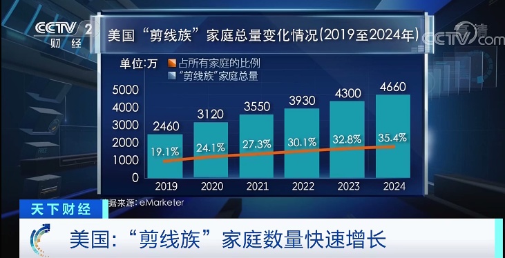 與此同時,預計今年將有超過600萬美國家庭取消傳統的付費電視服務,成為所謂的“剪線族”,這可能是有史以來“剪線族”家庭增長量最多的一年,使得美國“剪線族”家庭總量升至3120萬。
