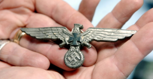 令人意外的是,波蘭人在剖開魚腹后發(fā)現(xiàn)德國納粹時期的金屬材質(zhì)的軍章。