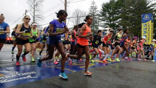 第119屆波士頓國際馬拉松賽事在潮濕陰冷的天氣中“開跑”。