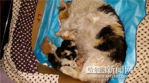 “我想它可能是實(shí)在找不到生產(chǎn)的地方,才向我求助的。”邢女士讓貓媽進(jìn)屋。聽說(shuō)一般貓生子都在盒子里,她就給它拿了個(gè)盒子,但是貓媽像受驚了一樣,見盒子就跑,怎么都不進(jìn)。