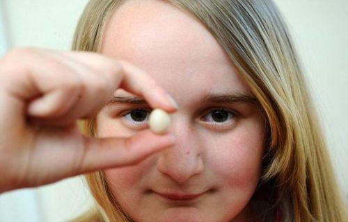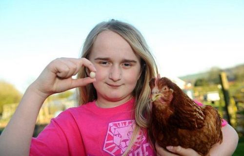 據英國《每日郵報》報道,來自英國卡馬森郡的12歲女孩尚儂·海斯(Shannon Hayes)養的母雞近日生下了一顆1.8厘米長、約有硬幣大小的雞蛋,或為目前世界上最小的雞蛋。