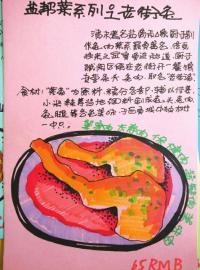 整個(gè)手繪的圖片畫風(fēng)偏卡通類型,每張圖的配文介紹了美食的來歷,還送上美食的做法,對于在餐館吃這些美食的人來說,還有價(jià)格參考,無論是美食圖還是配的文字,都能看出作者花了較多的心思。
